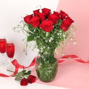 Be the first to review “Arrangement of 12 Red Roses in Glass Vase” Cancel reply