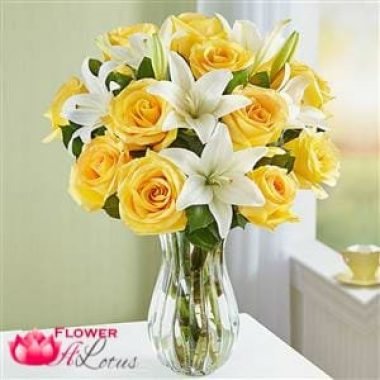 Yellow Roses N Lilies Basket