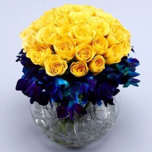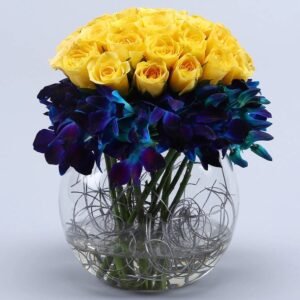 Be the first to review “Blue Orchids and Yellow Roses Arrangement” Cancel reply