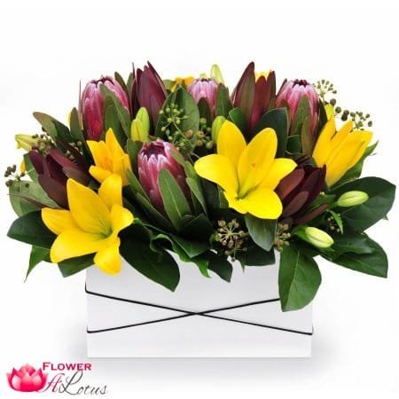 Be the first to review “Box of Australian natives and Yellow Lilies” Cancel reply