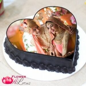 - 1 kg well designed heart shape chocolate photo cake.