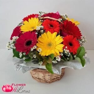 Cute flower arrangement for someone special. Make the celebration moment very special by sending this nice flower basket of 12 Mix Gerberas.