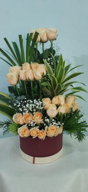 A Beautiful Flower basket of 30 fresh Peach roses may be the best online gift for your loved ones in India on any occasion. The basket is nicely decorated with Leaves, fillers.