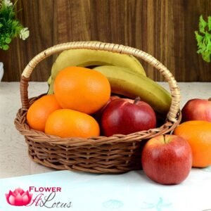 - 500 g Orange, 500 g Apple, 1 kg Banana in a handle cane basket