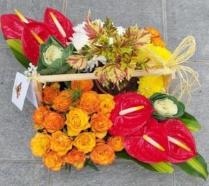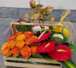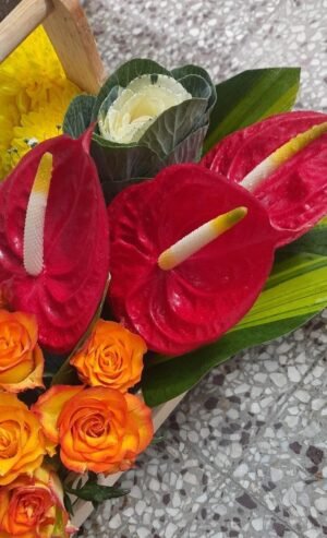 Mixed Flowers | Wooden Basket | Best online florist | Midnight Delivery | Gurgaon| India