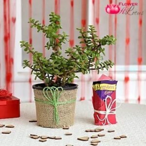 The combination of a Jade plant and 5 Ps Dairy Milk Chocolate is just awesome to suit any interiors of your house.Put it on a wooden centre table,or on the corner shelf,it will only enhance the surroundings.