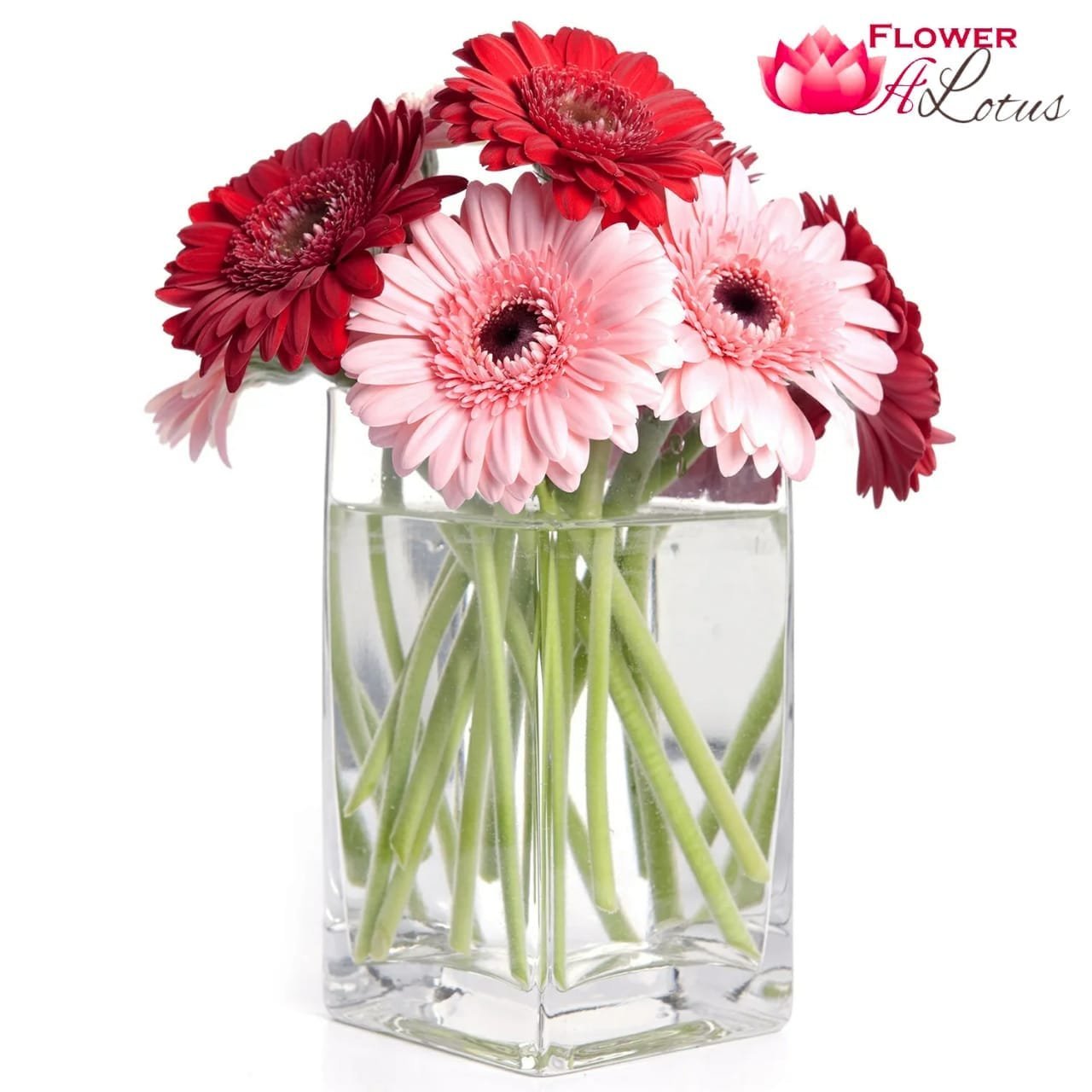 The striking elegance of the 10 Mixed Colour Gerberas Beautifully arranged in a Square Glass Vase are sure to steal the hearts of your loved one in India.
