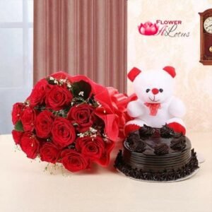 Red Rose Teddy N Black Forest Cake