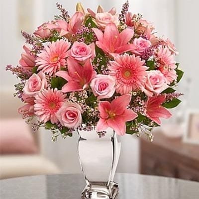 This pink flowers arrange in a glass vase comes with 06 pink gerberas , 10 pink roses and 3 Stem pink lilies with seasonal feelers .You can also pick other items from Autumn Lotus apart from this flower arrangement and send as Gifts to India. Your loved ones in India will just be overwhelmed to receive this gift on any special occasion
