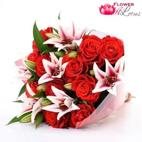 Red Rose N Lilies Bouquet