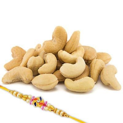 Send through autumnlotus.in,This Raksha Bandhan reaffirms your adore and prays for the elongated life and achievement for your brother. This rakhi gift hamper is the high quality, meaningful keepsake artworks, especially for this charming occasion. This combo includes one Rakhi along with roli chawal and Kaju.