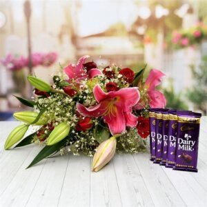 Be the first to review “Roses Lilies & Dairy Millk Combo” Cancel reply