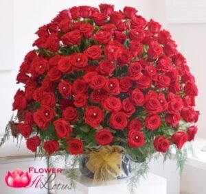 Present stunning red roses arrangement to your dear one in India through Floweralotus. Bewilder your loved ones with this exotic 200 red roses basket as your exclusive gift with other Gifts to India. The basket with greens make this flower arrangement more beautiful.