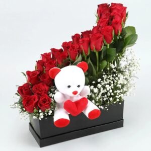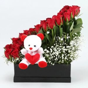Be the first to review “Teddy with red rose in a beautiful black box” Cancel reply
