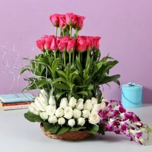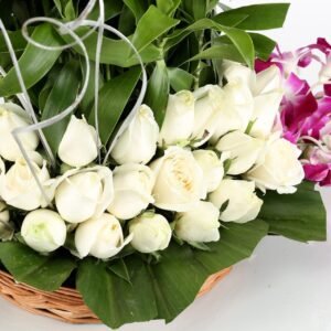 White Rose || Pink Roses || Orchids || Free Delivery || Basket Bouquet || India