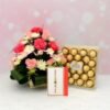 12 Pink Roses, 6 Pink Carnation and 2 Stem Daisies in a Basket, Ferrero Rocher – 24 Pcs, Brother Rakhi